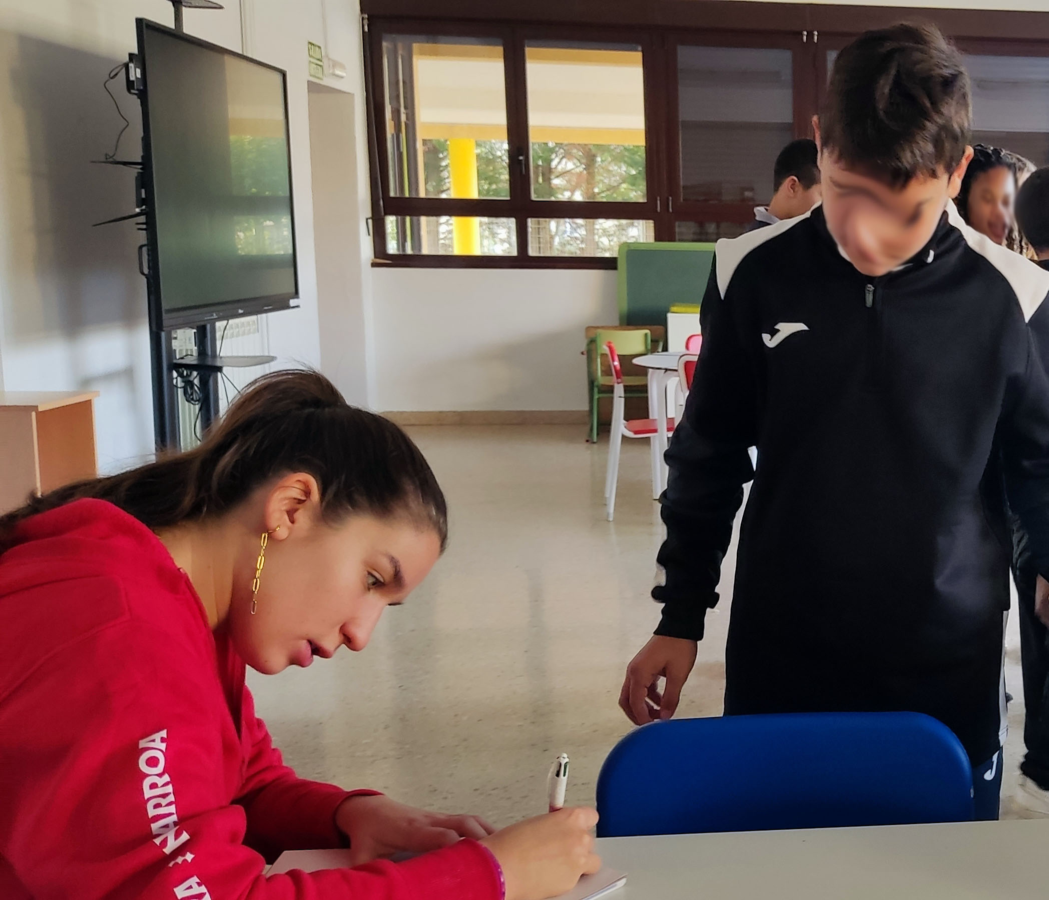 Martxoaren 5ean, Nafarroako Kirolaren Institututik antolatutako Emakume kirolariei buruzko hitzaldien barruan, Lucia Ibarrola Asenjo, tenista txapelduna, gure ikastetxera etorri zen EP 6 taldearekin jarduera bat aurrera eramatera. Luciak bere ibilbidea azaldu zigun, tenis modalitate ezberdinen ezaugarriak ikasi genituen, ondoren kiroldegian tenisa praktikatu genuen eta azkenik bere sinaduren txanda izan zen.